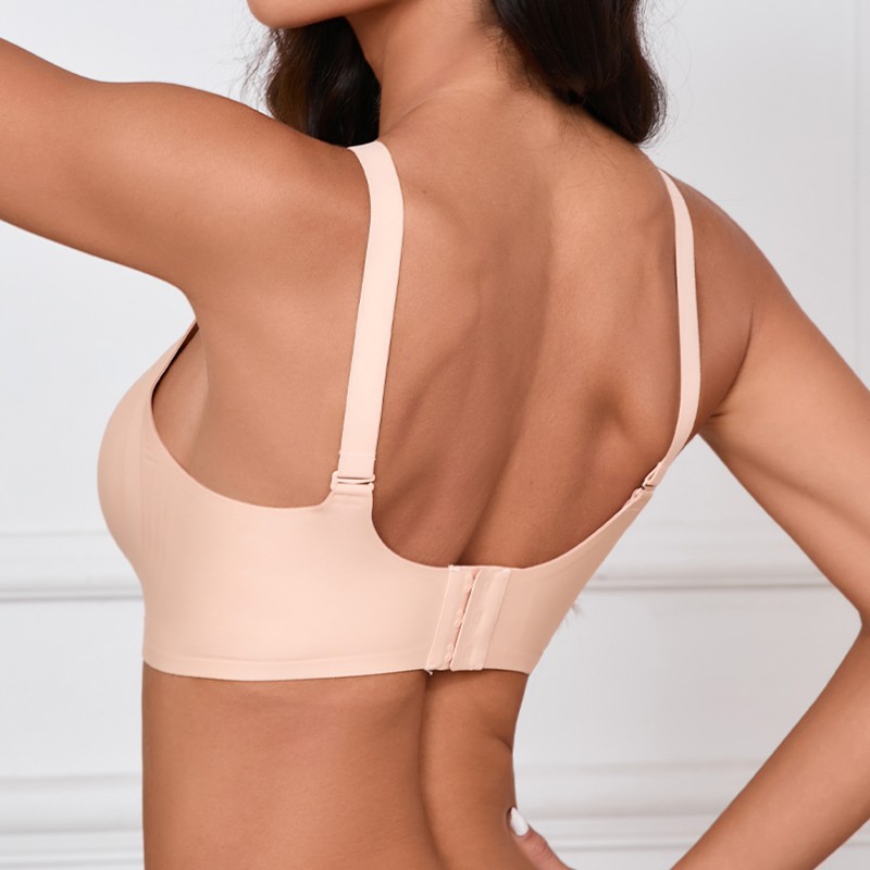 Este sujetador de una pieza sin aros incorpora tecnología sin costuras y copas moldeadas ligeras que eliminan la presión, ofreciendo una experiencia sumamente cómoda con soporte natural, ajuste invisible y tirantes anchos ajustables. Es ideal para múltiples usos, incluyendo deportes, uso diario y para dormir.